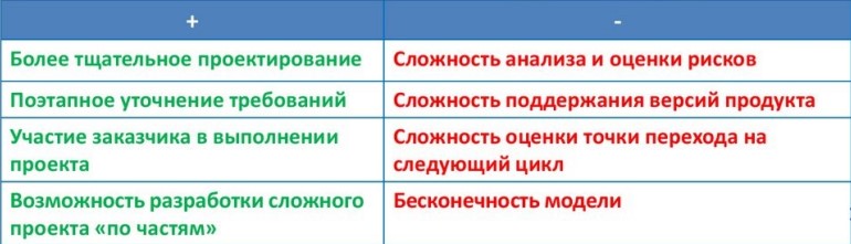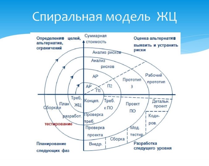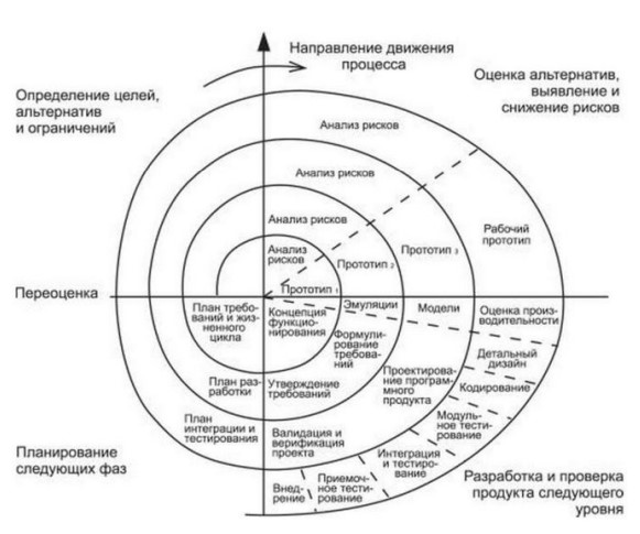 процесс должен подчиняться дисциплине, разумному планированию и управлению; реализация продукта должна быть отложена до полного понимания целей этой реализации.Спиральная модель стала следующим (после водопадной) этапом развития методологий разработки, поскольку она решает основную проблему каскадной модели.