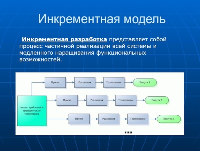 Итеративная модель предполагает разбиение жизненного цикла проекта на последовательность итераций, каждая из которых напоминает ”мини-проект” , включая все фазы жизненного цикла в применении к созданию меньших фрагментов функциональности, по с авнению с п оекгом, в целом.